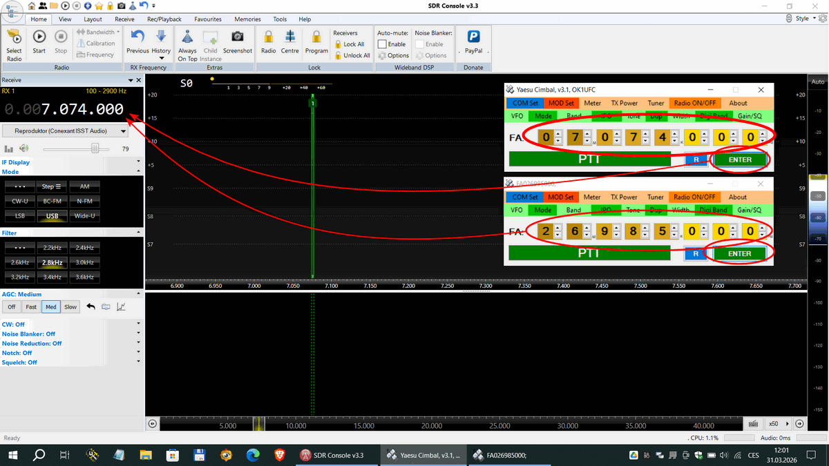 Příkladem budiž ukázka řízení kmitočtu SDR Console z mého
