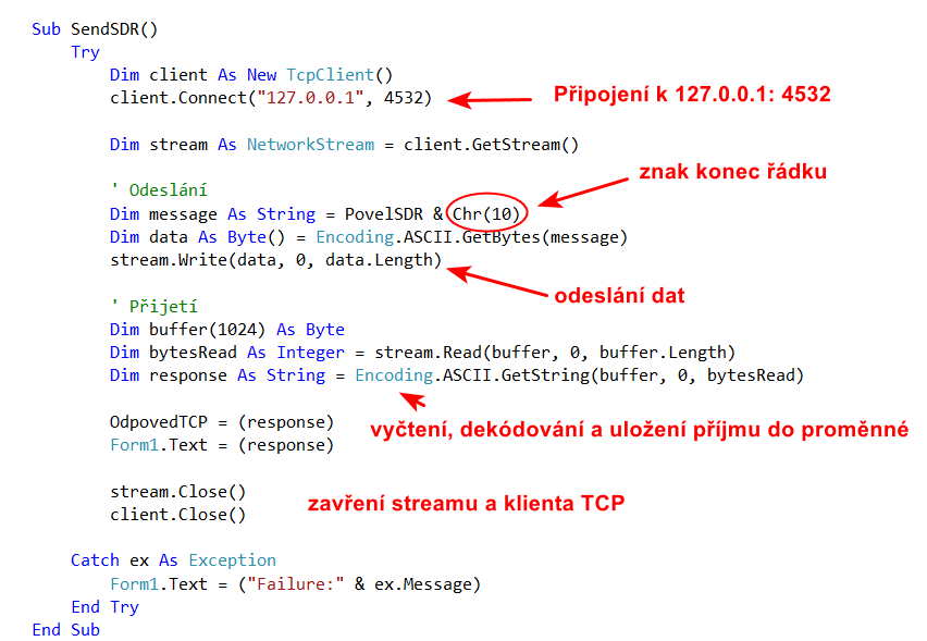 6. Pro zkoušení komunikace programu TCP serveru SDR++ není