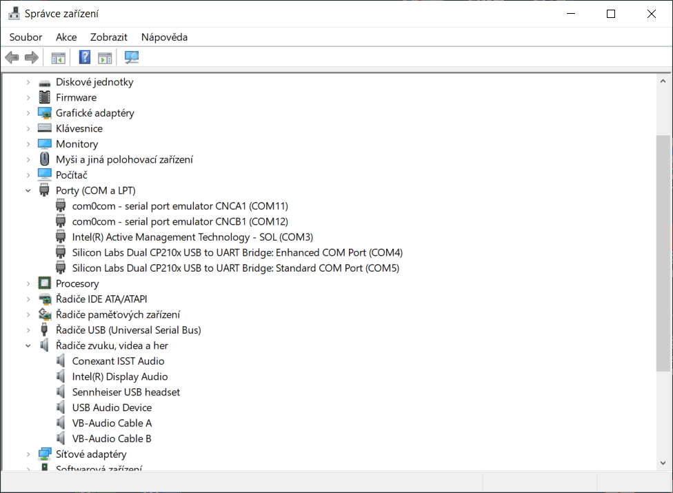 Silex objeví USB zvukovka a dva COM porty rádia. Klikneme na