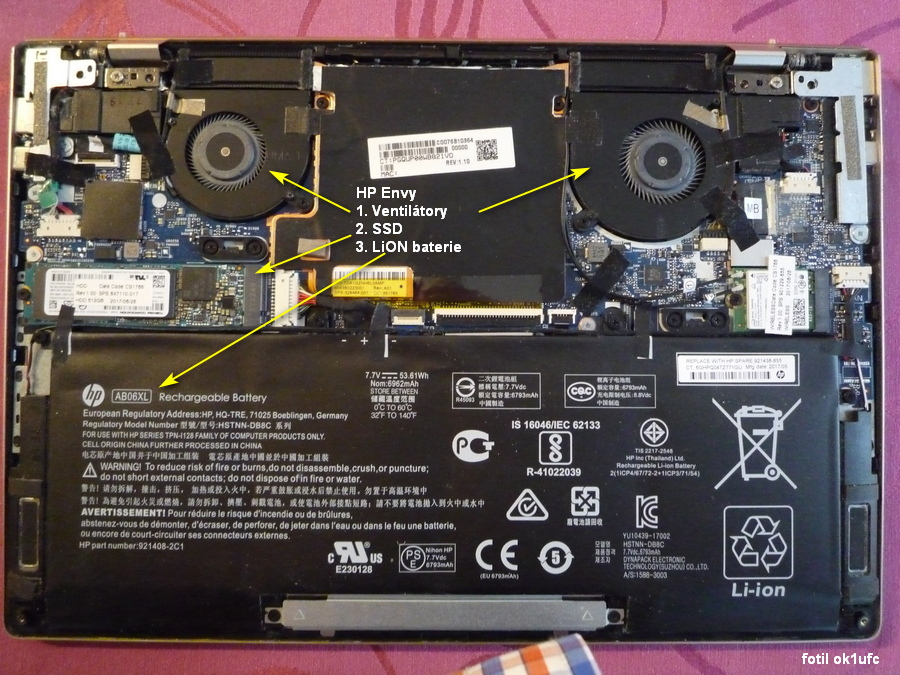 Jedná se o lehoučký, tenký notebook (ultrabook) s procesorem Intel Core i5, SSD 512GB, provedení M.2, RAM 8GB. Notebook je snadno rozebíratelný, dostanete se snadno k SSD disku, baterii i ventilátorům:
