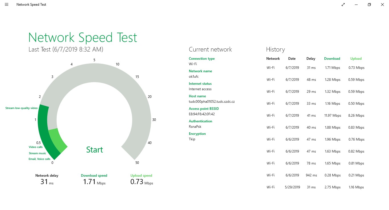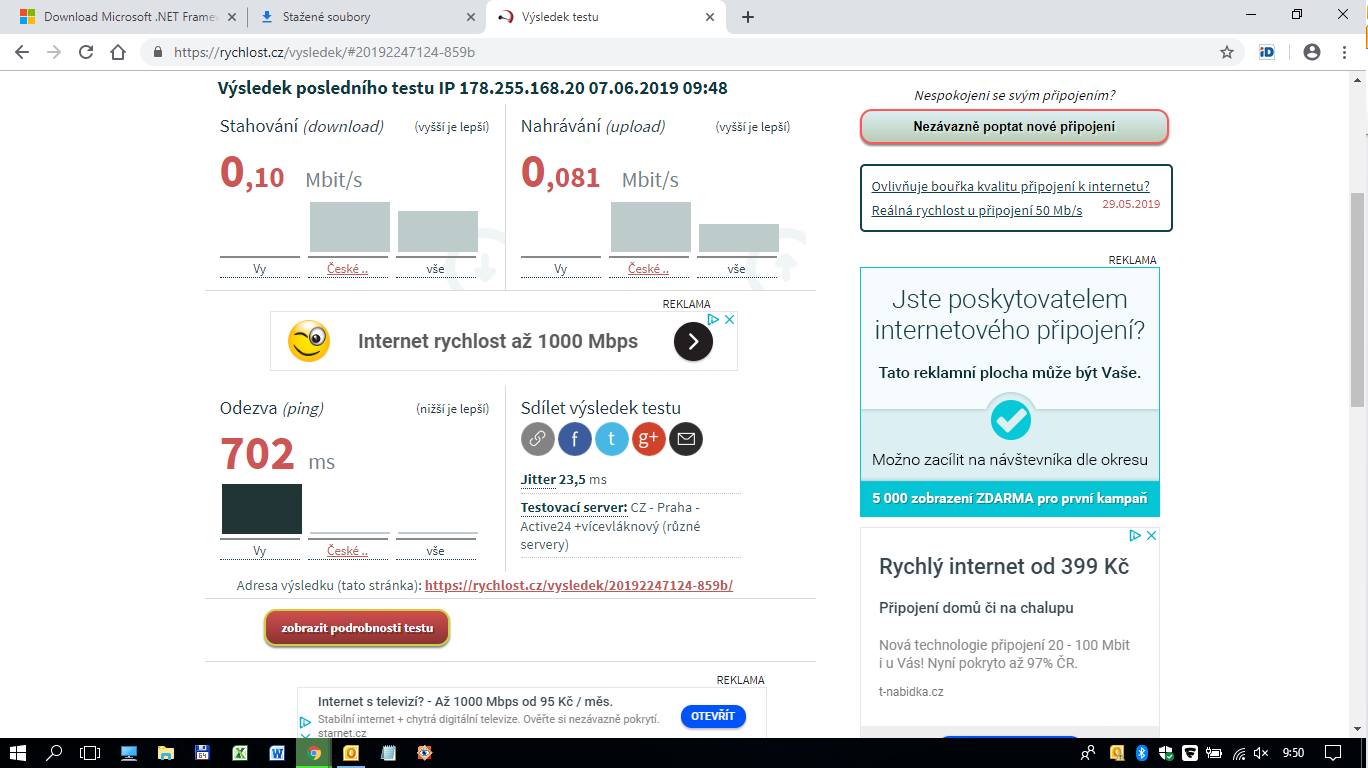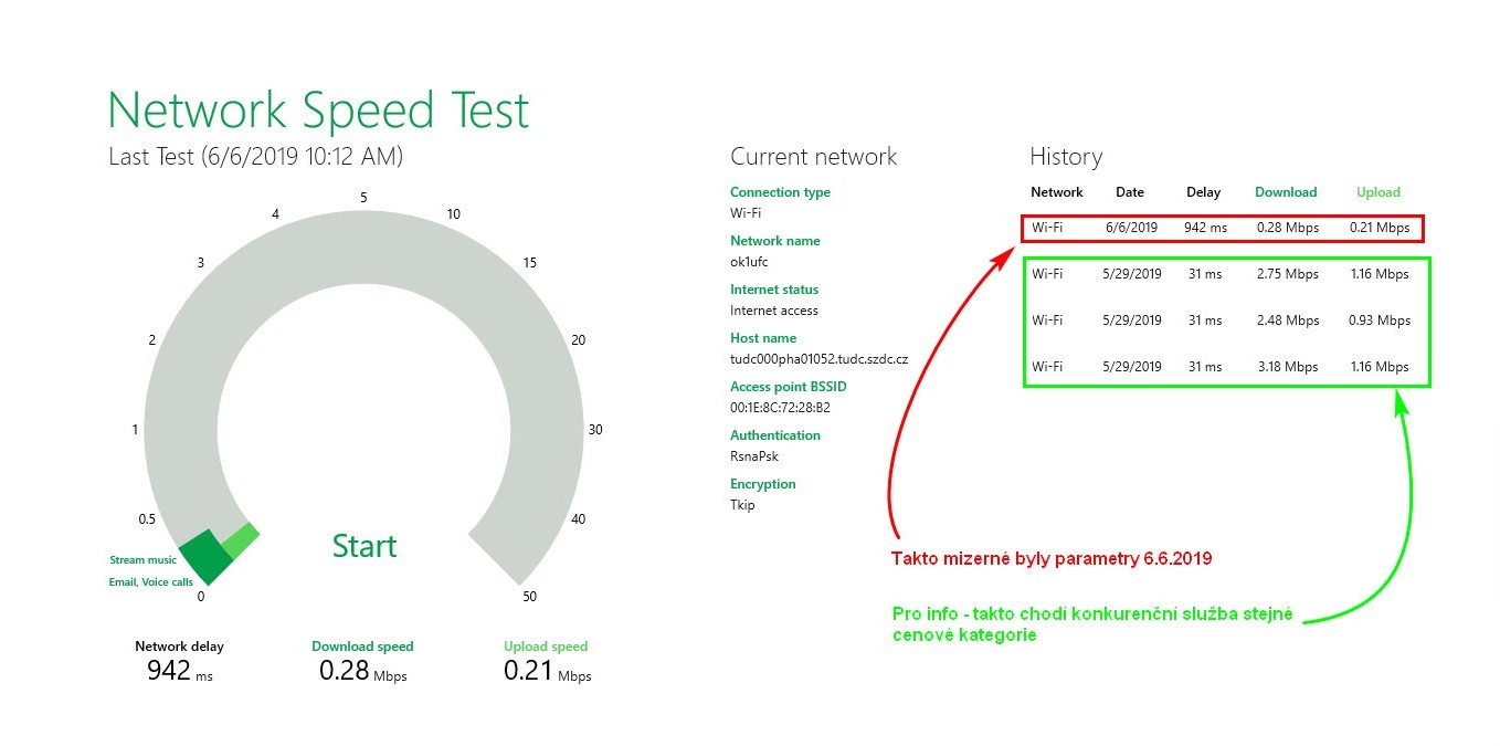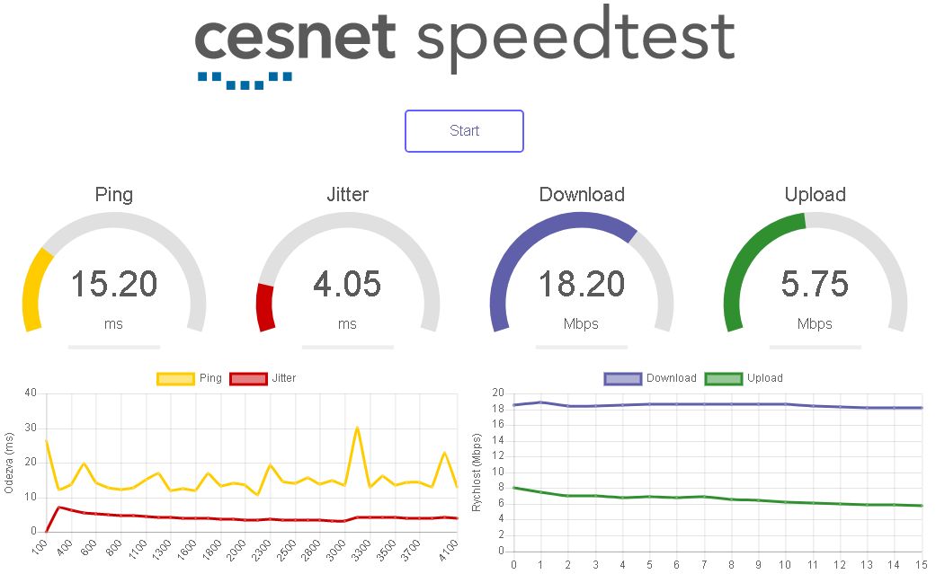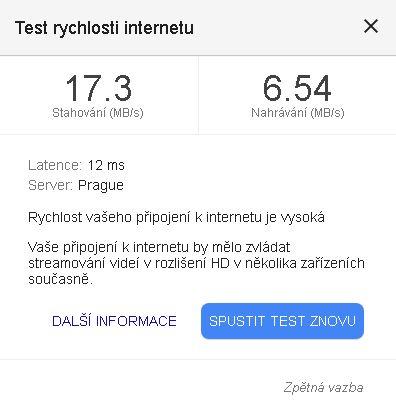 Bezdrev net, 31 ms, 2.75/1.15 Mbps. Hned nad tím špička