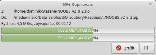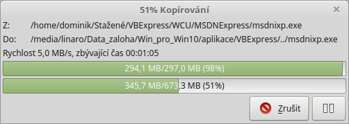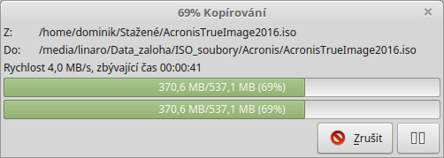 vpravo jde o přenos iso image, stahuji rychlostí 4MB/s. Dole