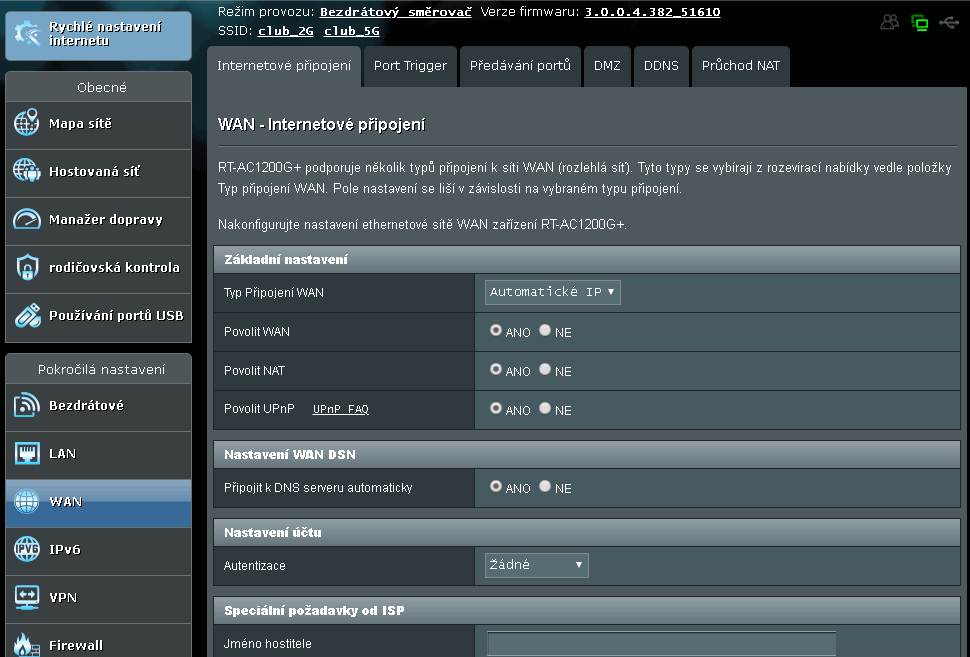 2. Dle pokynů od providera nastavíme parametry WAN.