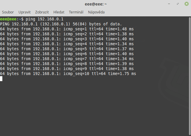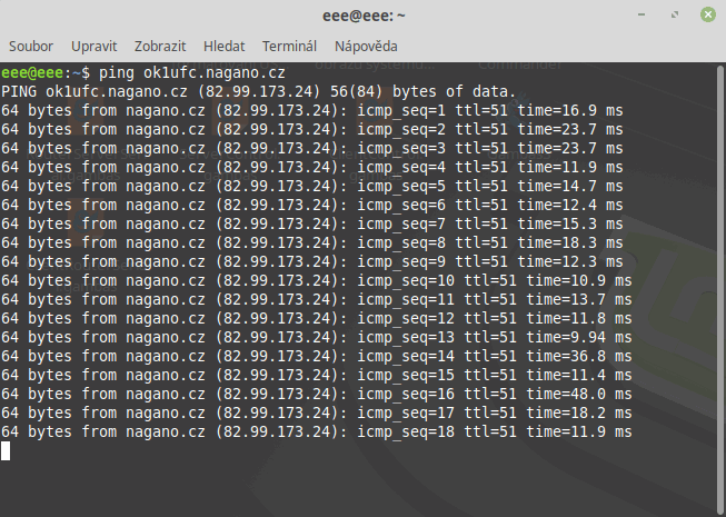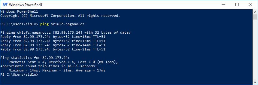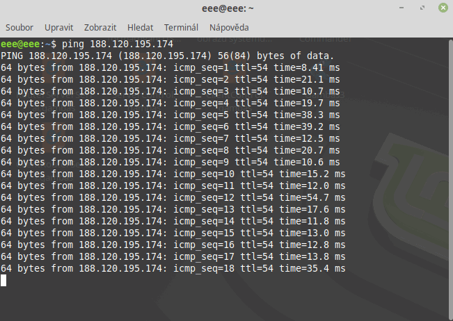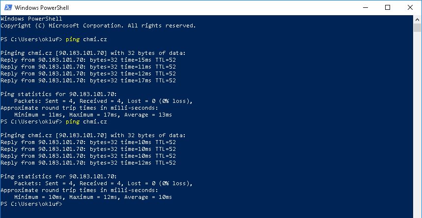 to stejně. Defaultně napíšeme ping a adresu serveru, který má
