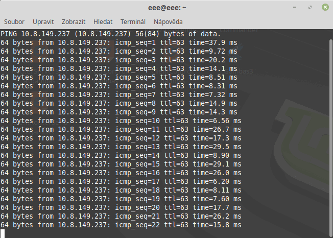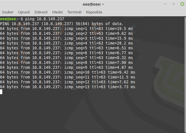 připojeni k Internetu, vyzkoušíme si ping na vzdálený server. Já