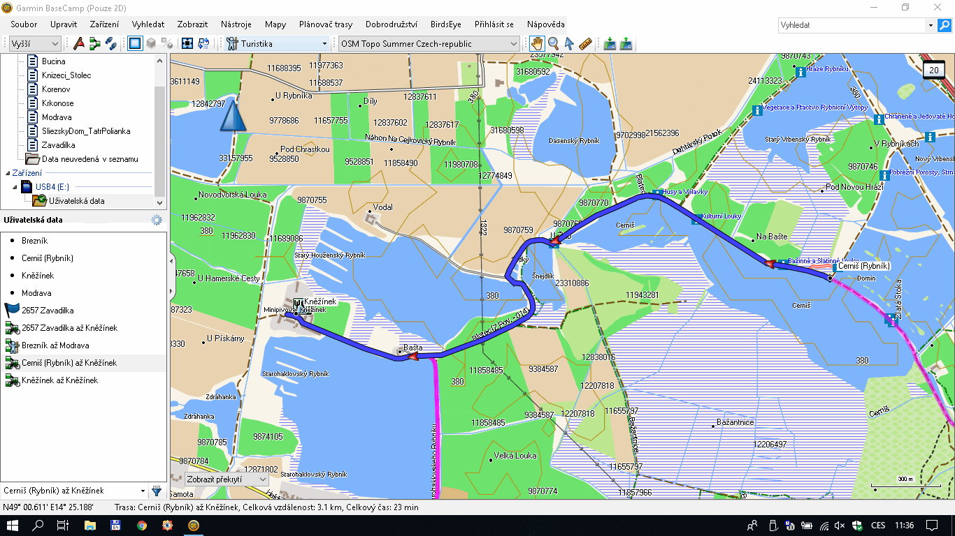 3. Mapa musí spolehlivě importovat body a trasy z GPS přístroje (např. gpx formát).