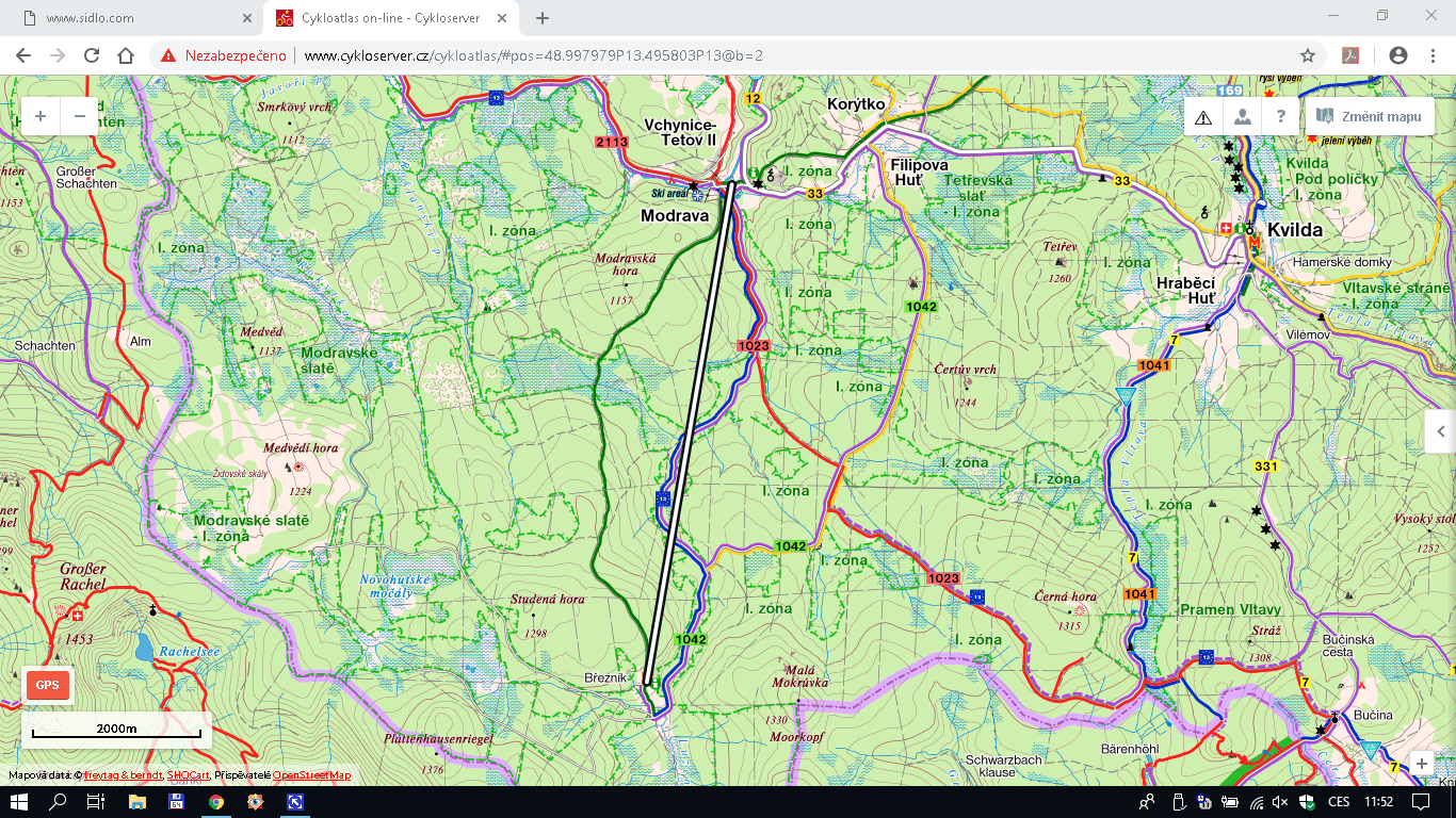 4. Mapa musí umět ze dvou bodů (vhodně, nikoliv nesmyslně vybraných) vygenerovat cyklotrasu nebo turistickou trasu. Ne je spojit přímkou, ne se s tím pižlat po mnoha krátkých úsečkách.