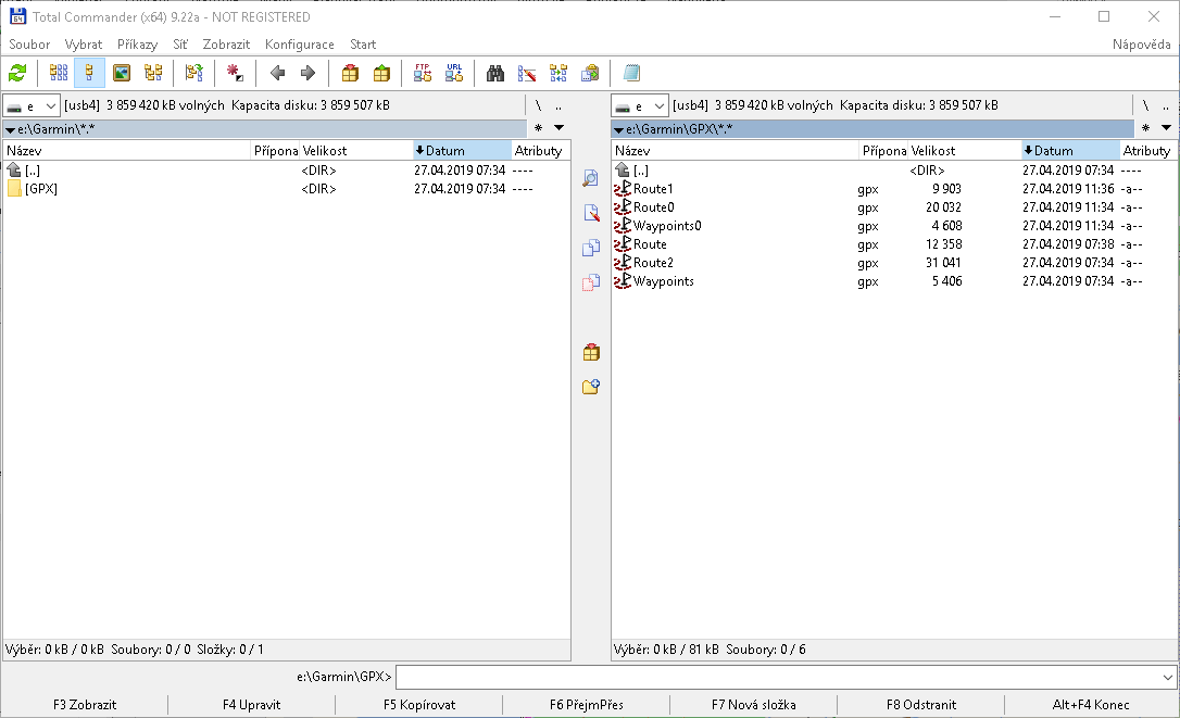 Ukládání do GPS Garmin je z BaseCamp jednoduché. Export se provede do zařízení na jedno kliknutí. V USB portu nemusíte mít ani GPS. BaseCamp provede export např. do USB flash (samozřejmě i import z USB):