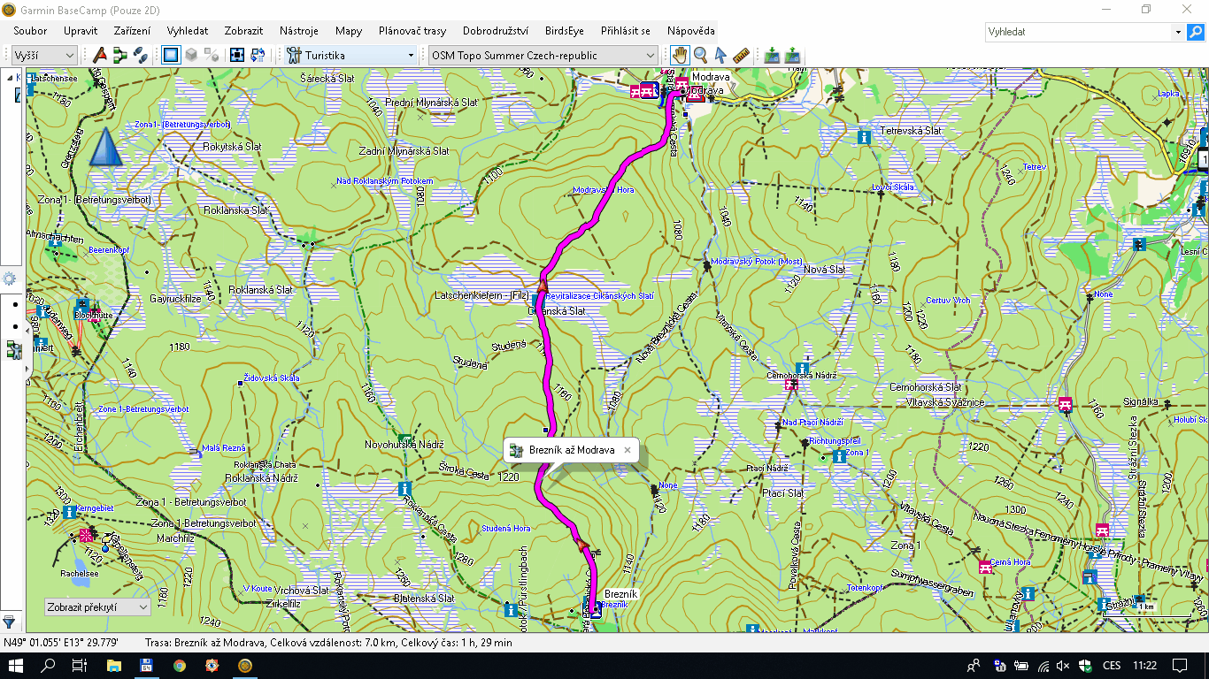 Trasu snadno zobrazíte, včetně výškového profilu: