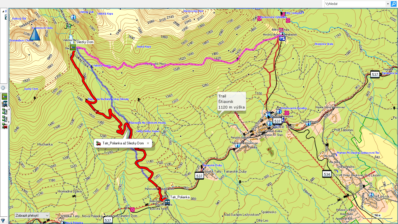 Nebudu napínat. Všechny tyto požadavky mi plní software BaseCamp, s norskými topografickými mapami http://www.frikart.no/garmin. Používám i jiné topomapy, ale mapy frikart.no jsou hezké. Vycházejí z podkladů OSM, uvádím několik náhledů: