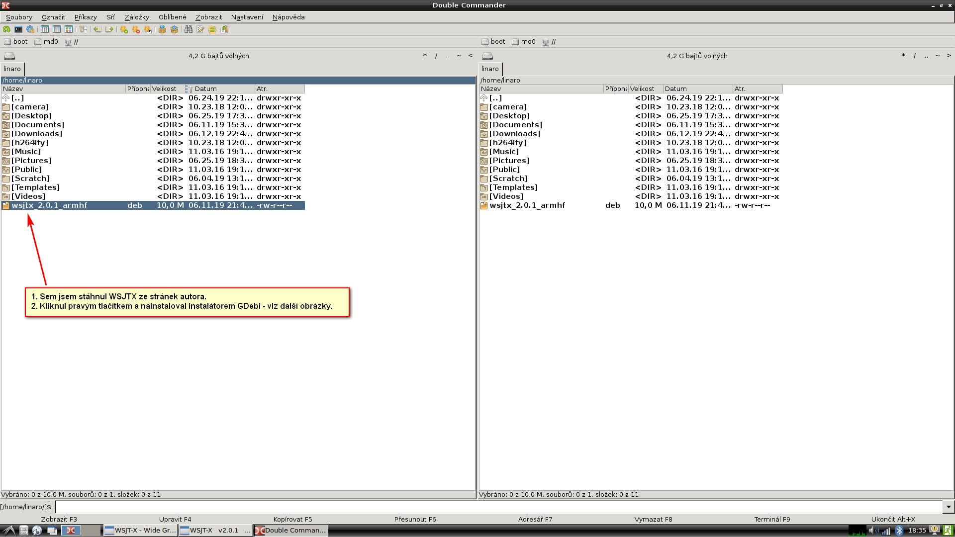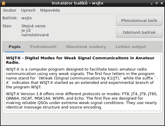Komunikační SW: balíček WSJT-X, verze 2.01, stažený pro ARM ze stránek autorů