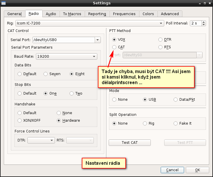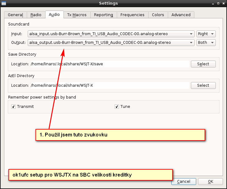 5. Instalace balíčku, nastavení TCVRu a zkoušení, to mi trvalo asi půl hodiny. Chvíli jsem hledal v menu tu USB zvukovku.