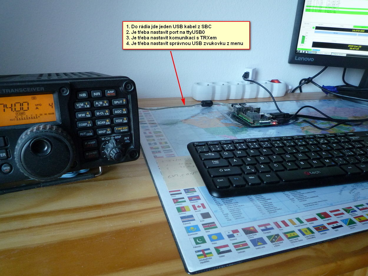 Pracoviště s jednodeskovým počítačem a TCVRem