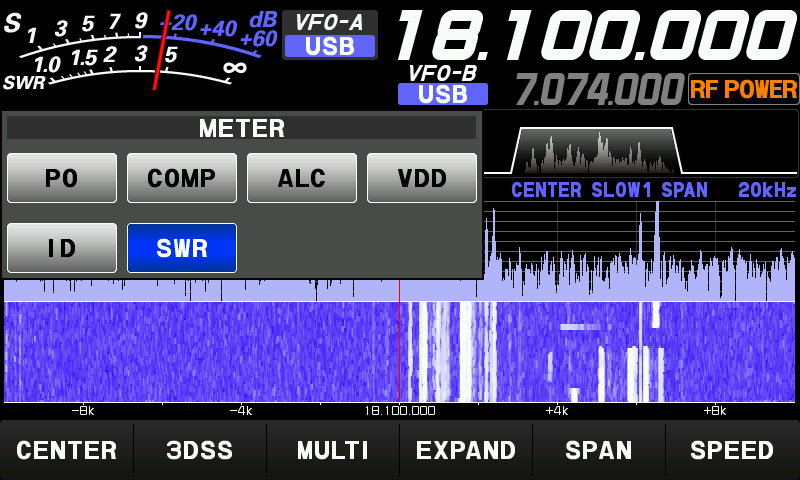 Kliknutím na indikátor S metru zobrazíme okno METER