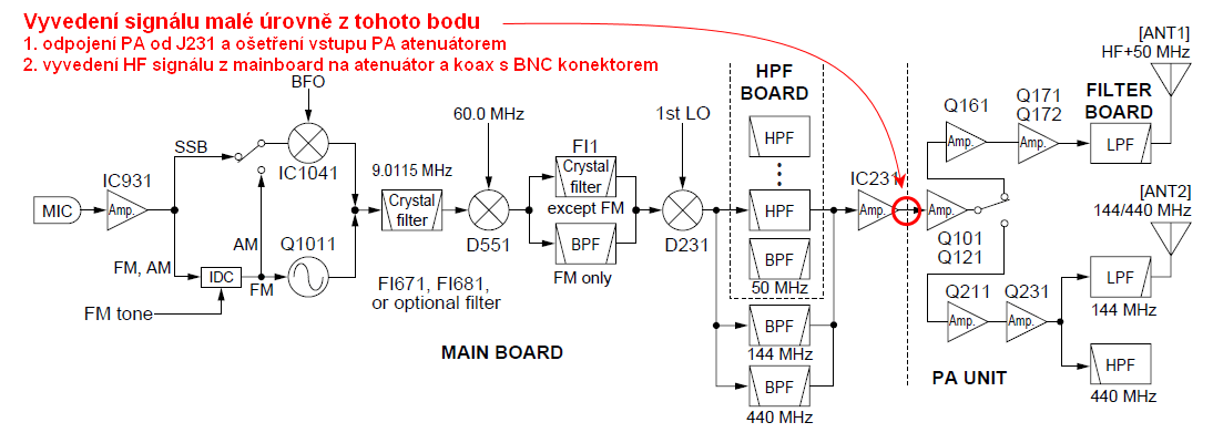 Prakticky to znamená odpojit od signálu desku PA v transceiveru, vstup
