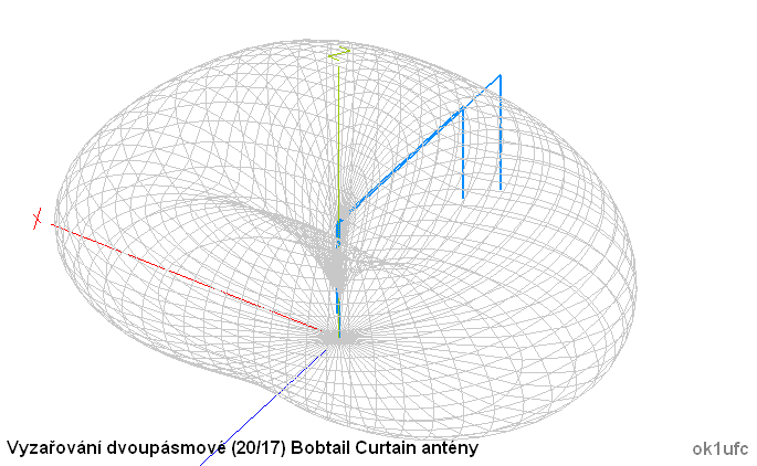 Anténa vyzařuje na nízkém úhlu, ve dvou směrech dominantně a ve směru