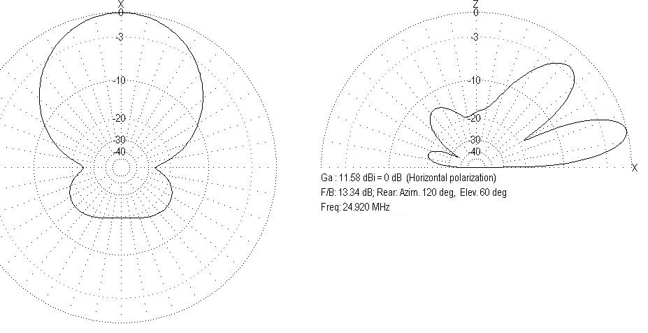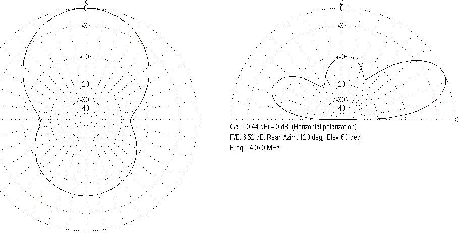 Základní charakteristiky antény ve výšce 12m Uvedené vlastnosti má anténa s prvky nastavenými na nominální rozměry. Tato poloha je označena na regulačních prvcích ve výrobě. Série 00 umožňuje velký rozsah regulace a proto lze např. diagram optimalizovat na některém preferovaném pásmu. Zpravidla to bude na úkor parametrů dalších pásem. Je třeba si uvědomit, že výška 12 m nad zemí odpovídá jedné polovině vlnové délky pro nejnižší pásmo a zejména tím jsou dané vlastnosti uvedené antény. Anténu lze rovněž optimalizovat v různých výškách nad zemí, případně nad střechou. Nominální diagramy jednotlivých pásem uvádím níže.