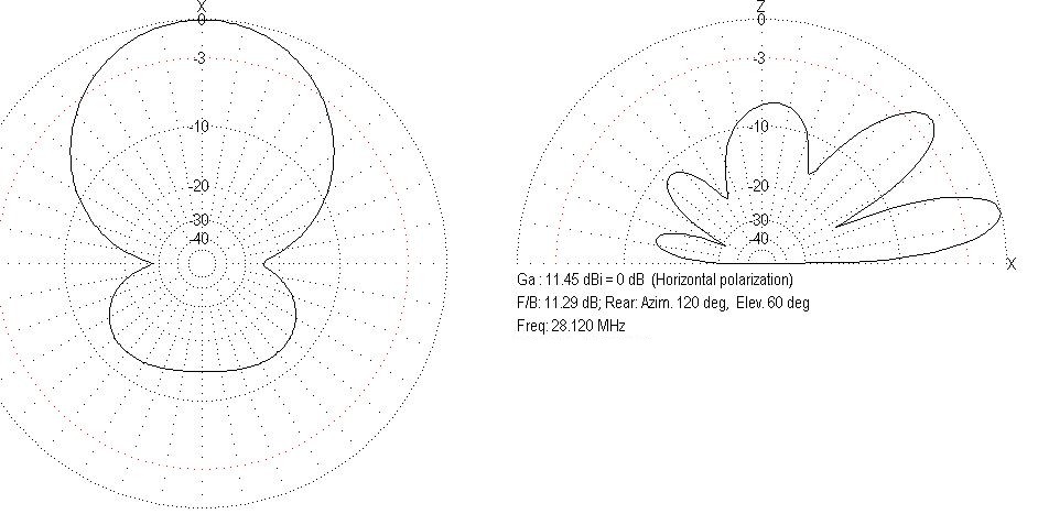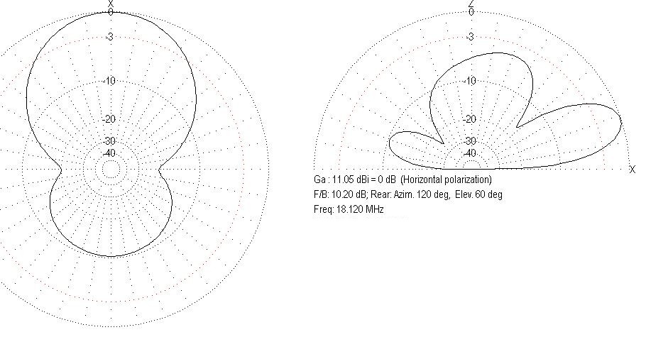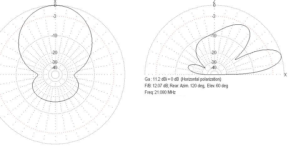 1) Všimněte si, že tečou značné proudy také v napájecím ráhně. Možná vás napadne odpověď, proč některé správně geometricky navržené antény fungují lépe než jiné. I u tohoto druhu antény platí, že nevhodně konstruovaná část napáječe, kde je stojatá vlna, může mít své záludnosti třeba ve šroubovém spoji, v blízkosti vodivé trubky apod. I tady platí většina z uvedených zásad, o které jsem psal v článku o drátových anténách. 2) Právě z důvodů nízkých ztrát byly použity ke konstrukci vodivě dokonale spojené díly (svařované) a materiály s vysokou vodivostí ( hliník ) a s dostatečným průřezem ( trubky ). 3) Anténa již představuje monstrum o hmotnosti téměř 20 kg, o délce téměř 5.5 metrů a o rozpětí 11.6 metrů. Anténa má 8 logaritmicko periodických dipólu. Všechny tyto vlastnosti je třeba vzít v potaz zejména s ohledem na vlastnosti stožáru, rotátoru, atd. |