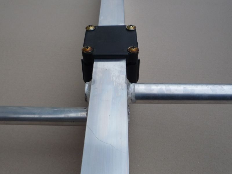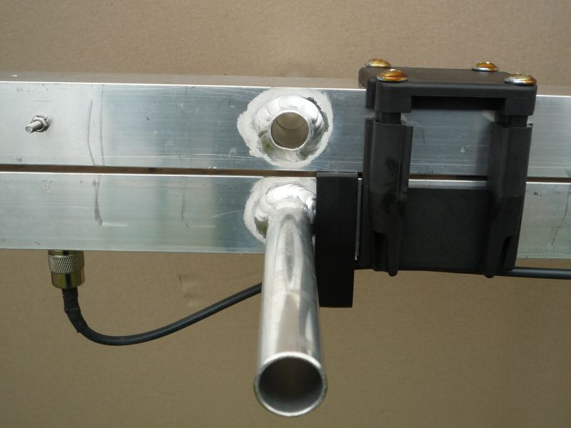 koaxiál se připojuje pomocí konektoru SO-239, koaxiál je zavěšen pod spodním ráhnem na platových příchytkách: