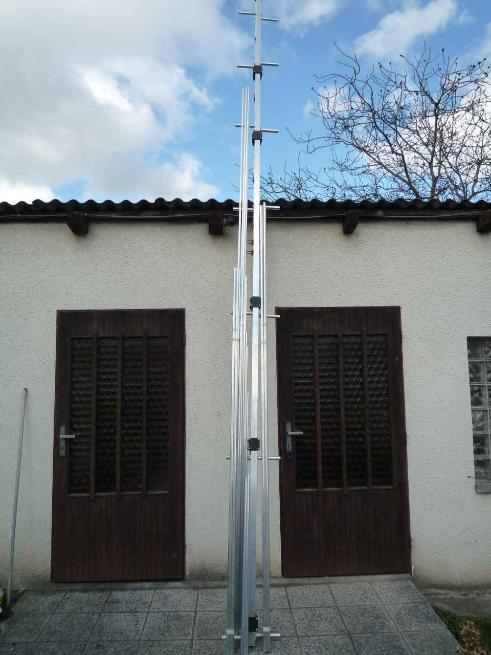 Vlastnosti Pouzdra prvků jsou do přesně vrtaných otvorů ráhna zavařena, mají tloušťku stěny 2.5 mm. Prvky se zasunou do pouzder v celé délce a zajistí se šrouby, které jsou nerezové a jsou součástí dodávky. Dlouhé elementy jsou vyrobené z tenkostěnných trubek, snadno se s nimi manipuluje. Série MK1 je vhodná pro experimentátory. Prvky MK1 jsou na koncích vybaveny struženými pouzdry, do kterých se zasunují regulační tyče (trubky o průměru 10 mm). Prvky dalších sérií již nebyly vyráběny jako nastavitelné. U limitované série MK2 pro rok 2013 jsou dodány prvky nastavené z výroby s ohledem na výšku montáže u zákazníka (pokud si to objedná) nebo na standardní výšku h=15 m. Pozn.: Série MK1 nebude již nikdy vyráběna. Ze série MK2 vznikla série MK4, která se dodává s nastavenými prvky s výroby a nepředpokládá se žádné nastavování. Ráhno tvoří vysokofrekvenční přizpůsobovací vedení. Je symetrické, oba díly jsou vzájemně izolované a při výrobě bylo použito technologie svařování. Důvodem pro svařování ráhna a některých elementů byla zejména minimalizace ztrát. Tato anténa patří mezi tzv. krátké logaritmickoperiodické řady a ztráty ve fázovacím vedení hrají roli. Montáž antény je jednoduchá a s dokonalou vodivostí v bodech, které musí být vodivě spojeny. Toto bývá někdy problematické u konstrukcí s drátovým fázovacím vedením a velkým množstvím spojů. Jednotlivé díly antény (prvky a izolátory) jsou při poruše snadno výměnné, bez nutnosti demontáže celé antény nebo opětovného pracného nastavování. Z montážní plošiny namontuje anténu jeden člověk bez pomocníka. Doporučujeme namontovat nejprve ráhno na stožár, následně koaxiální kabel a teprve potom montovat postupně a symetricky jednotlivé prvky, na fotografii je autor antény s kompletním ráhnem: