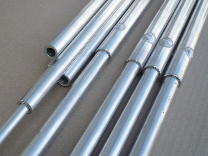 Pouzdra elementů MK1 jsou vidět v detailu, trubičky jsou tenkostěnné, pouzdra pro regulační tyče mají vnější průměr 14 mm, vnitřní 10 mm, vnější průměr konce elementu je 16 mm, větší průměr u paty elementu je 20 mm, série MK2 nemá regulační tyče o průměru 10 mm, má jinou délku prvků a větší průměr prvků na konci.