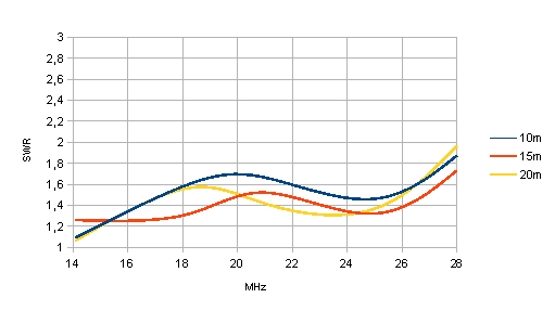 V obou grafech je znázorněna závislost SWR na výšce. I tak vidíme, že nám SWR neuteče bůhvíkam, jako např. u úzkopásmových antén (Yagi). Závěr V době, kdy jsem aktualizoval tento článek,