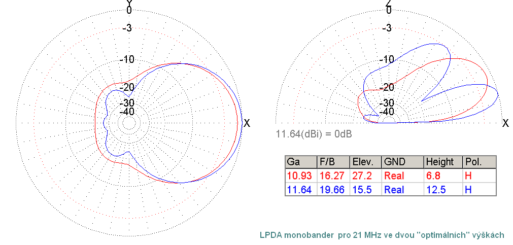 však u jednopásmové LPDA antény měnil méně výrazně, než u antény Yagi s