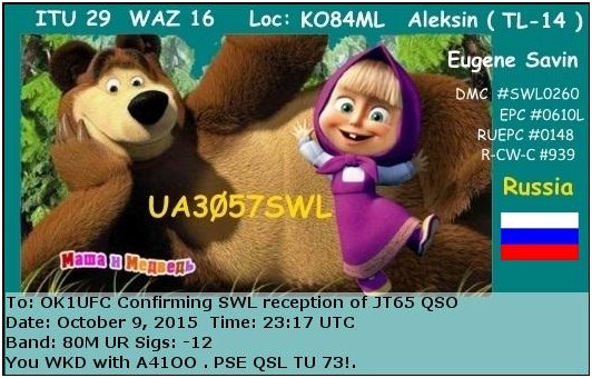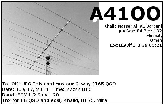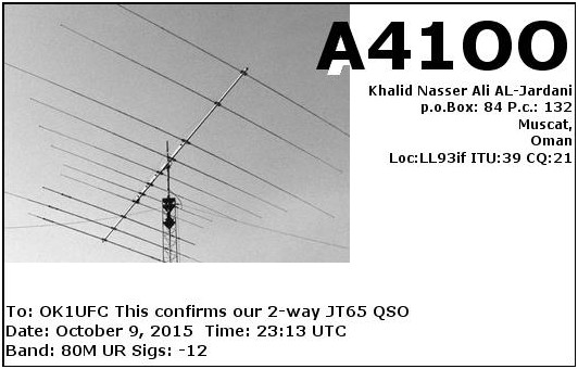 A41OO, naposledy dneska, tj 09.10.2015. Jeho signály jsou v EU silné, při