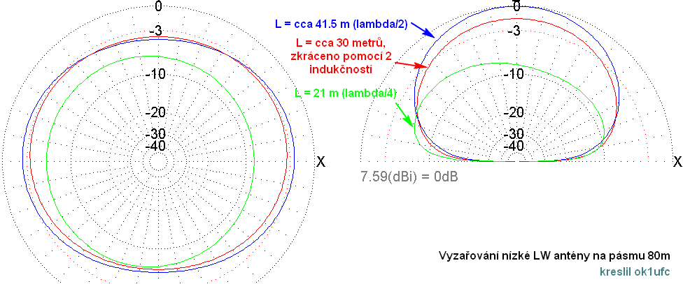 přičemž zisk půlvlnné antény je cca 7.5 dBi, zisk zkrácené je cca 6 dBi,