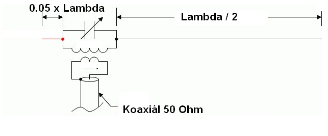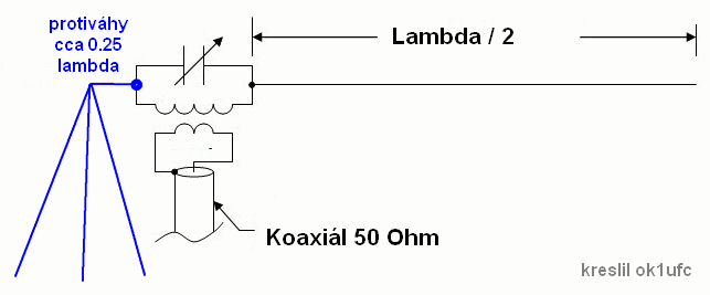 1. půlvlnnou nezkrácenou anténu, přizpůsobení paralelním LC obvodem a