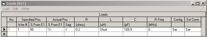 Krok č. 2 Nastavíme rezonanci antény pomocí kondenzátoru. Z menu u loads nastavíme zadávání hodnot RLC: