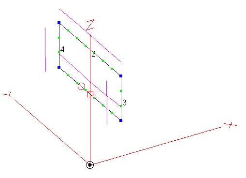 Schéma je okopírováno z obrazovky programu EZNEC demoverze. Delší trubky mají po 7 segmentech, svislé po 3 segmentech. V zeleném čtverečku na spodní trubce je ladicí kondenzátor, vedle v kolečku je napájecí transformátor. Kondenzátor je vzduchový, od OK1TN a trafo je na velikém toroidu, kterým bylo možné prostrčit AL trubku o průměru 32 a do mezery vinout vazební vinutí.