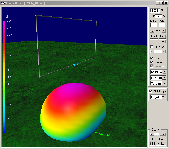 1. Chci ukázat, že MLA anténu poměrně velikých rozměrů (rám z trubek o rozměrech cca 6 x 2.5 metru, tj. obvod 17 metrů = 0.2 x lambda) lze vyřešit v demoverzi EZNEC s přesností takovou, že ve výsledku přibližně odpovídá vypočtená hodnota ladicí kapacity a převod transformátoru skutečné anténě.