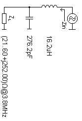 přizpůsobení L článkem na kmitočtu 18 120 kHz (L, C= 2.49 mikroH, 12.2 pF)