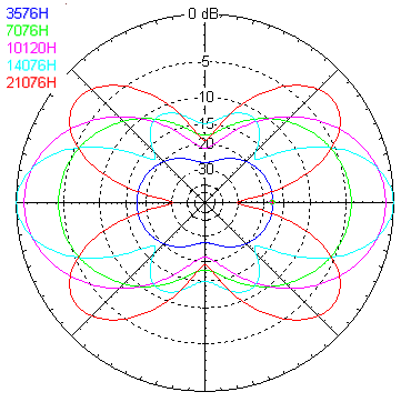 Na vyšších pásmech (15, 12, 10 m) mi vadí nepříjemná minima, která anténa ve vyzařovacím diagramu má. Hlavních směrů je na mě už moc :-) a laloky se mi zdají úzké. Já s tím neumím až tak dělat, ale to je dávno známá vlastnost delších drátových antén s ohledem vůči délce vlny. U antény T2FD laloky určitě poznáte, ze směrů, které jsou potlačené o 20 - 30 dB toho fakt málo uslyšíte :-).