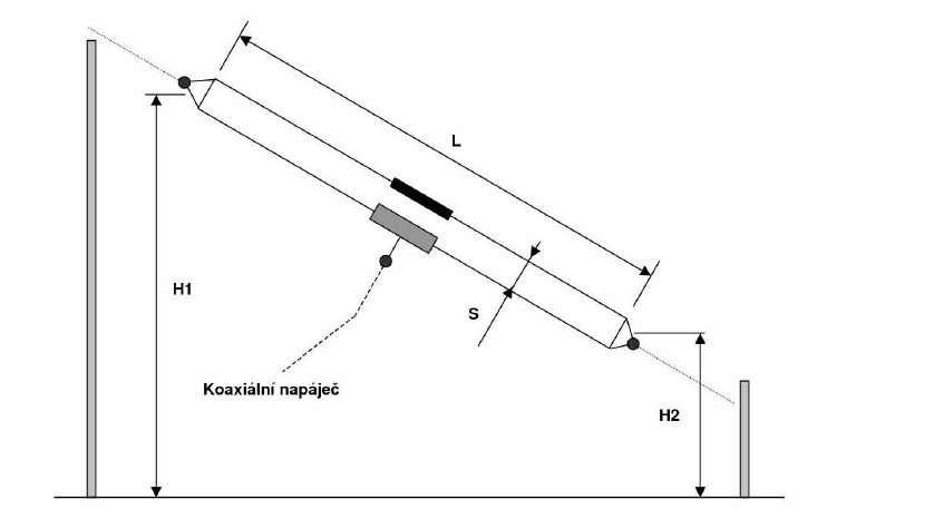 Název antény vznikl z následujícího schématu instalace a provedení:
