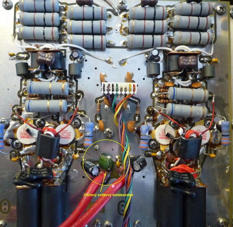 tranzistory byly poškozené. K opravě jsem použil dva původní polovodiče