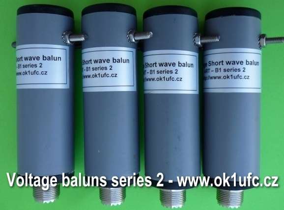 Pro informaci uvádíme všechny osvědčené typy balunů viz specifikace airwire ART-01, kde kromě klíčových parametrů bylo uvedeno také pouzdření balunu - viz package size 1 až 6. Z obrázků jsou vidět pouzdření starších balunů. Jde o pouzdra z odolných plastických hmot. Pouzdření zde uvádím také z toho důvodu, že je vhodné pro experimentování nebo pro zapouzdření atypického provedení. Napájecí konektor je SO-239, který slouží pro připojení vedení s koaxiálním kabelem. Symetrické vývody jsou na nerezových šroubech M4. Ukázky různých provedení starších typů balunů jsou zde: