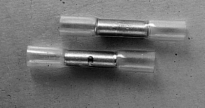 Pokud je anténa delší, je nutné žebříček spolehlivě propojit s anténním zářičem. K tomu používám buď pájený spoj chráněný smrštitelnou trubičkou nebo (raději) tzv. kabelovou spojku smršťovací (dutinku). Viz obrázek vpravo.