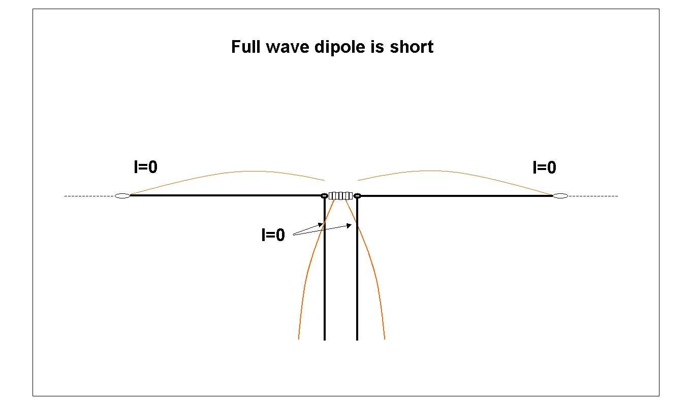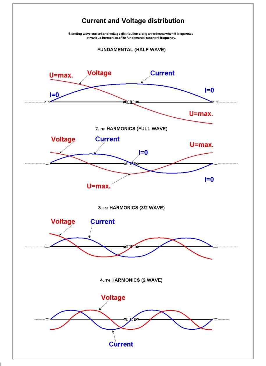 b) Musí do antény téci proud? Záleží, kde ho měříme. Pro vytvoření názoru uvádím pár obrázků o tom, jak a kde je to na dipólu s proudem a napětím. A že v některých případech může do anténního zářiče téci velice maličký proud. Ale to je o tom, že na zářiči antény je a musí být stojaté vlnění a rozměry zářiče jsou navrženy s ohledem na vlnovou délku.