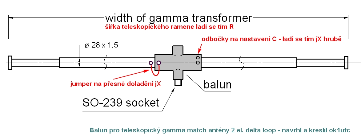 Balun je speciální tím, že obsahuje kapacity pro gamma match (pro všechna