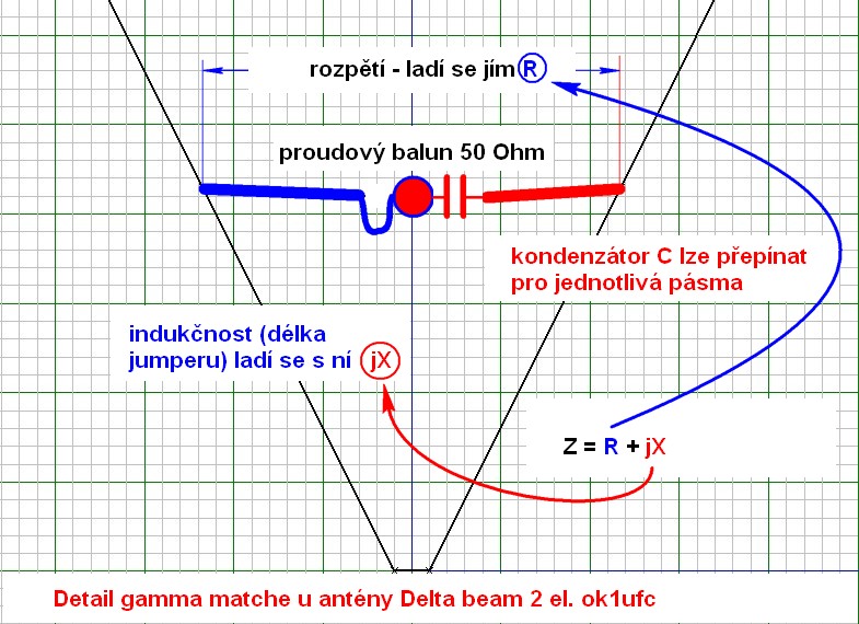 Gamma match antény byl navržen pro připojení koaxiálního napaječe Zchar