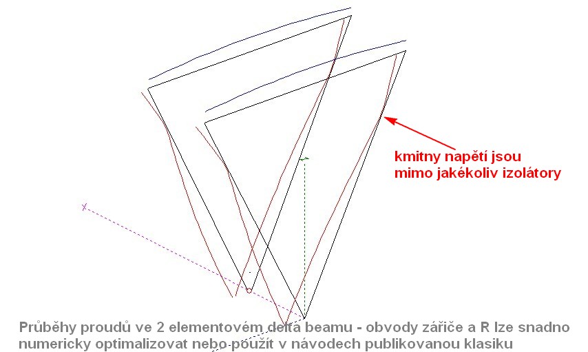 - delta beam má vysokou účinnost, kmitna napětí leží mimo izolátory,