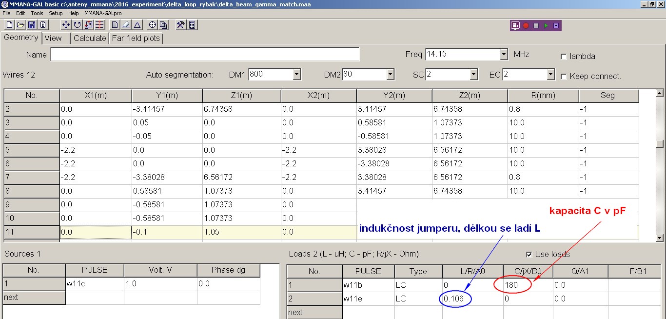 kapacit se hrubě ladí imaginární část impedance jX. Přesnou délkou jumperu se