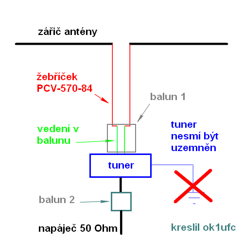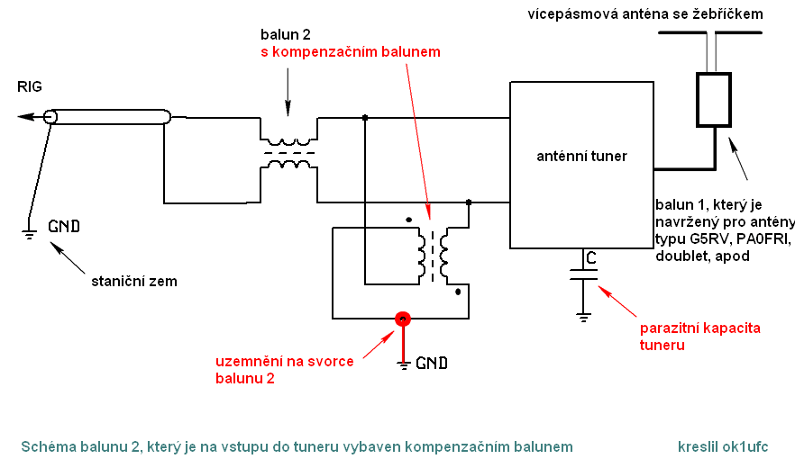 balunu. Ta je také nakreslena na schématu. Z tohoto důvodu je balun 2