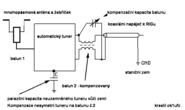 parazitními kapacitami z blízkého tuneru. Proudový systém balunu 2 si už