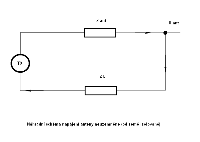 1. Základní schéma přechodu symetrické a neuzemněné soustavy antény do
