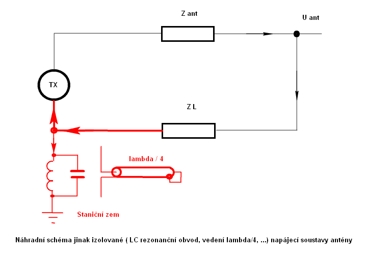 Na tomto schématu vidíme (znázorněno červeně), jak část proudů teče do