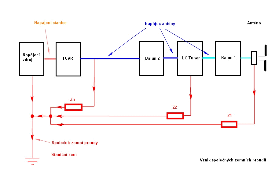 téci do společné staniční země. Tyto proudy netečou jenom po koaxiálním