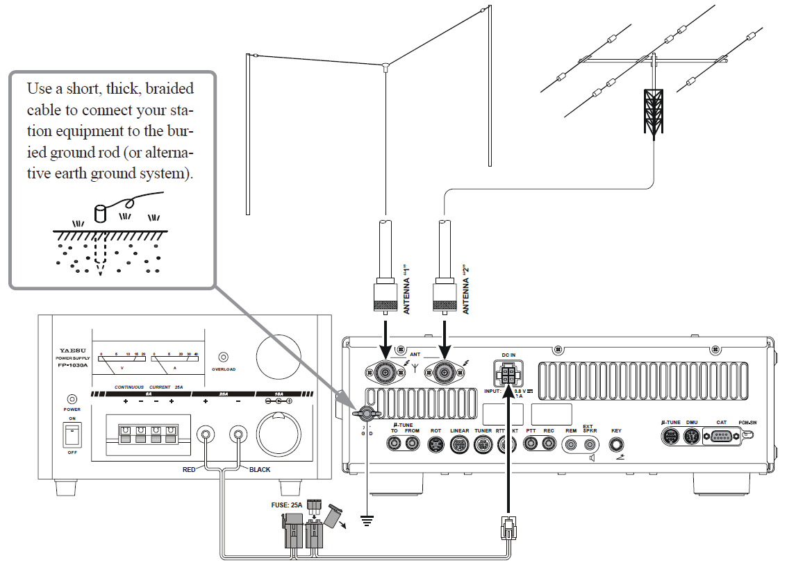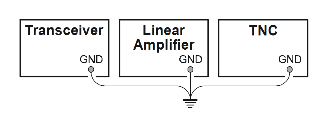 HF proudy, tedy ani tzv. common mode currents, však netečou do staniční